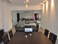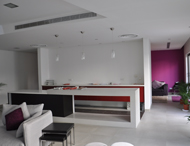 داخلياً، عمل المصمم على وضع حلول تصميمية إبداعية توفر مسكناً يكون مفتوحاً في فراغاته العامة من مجالس وصالات وقاعات طعام في الوقت الذي تتوفر فيه المرونة من خلال تقسيمه متى ما تطلبت الخصوصية ذلك. كما روعي بالمشروع التحديات المناخية للمنطقة مع إمكانية التنفيذ ضمن تكلفة مناسبة. |