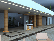 ضمن مرحلة التصميم المعماري والهندسي لهذا المشروع، قام المصمم بعملية تصميم الأرضيات والأسقف المستعارة وتوزيع الأثاث بالإضافة إلى الإختيار والتوصيف الخاص بمواد التشطيب والأثاث.