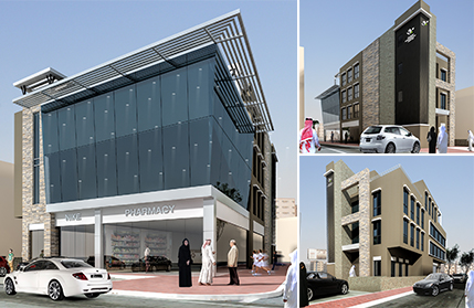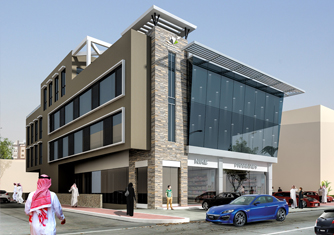 وصف:المشروع المقترح عبارة عن مبنى تجاري – إداري يتكون من ثلاثة طوابق ويقع في منطقة تجارية بمدينة الرياض حيث تبلغ مساحة قطعة الأرض 973.50 متر مربع. يتميز تصميم المبنى بطابع عصري حديث حيث يمثل اختلافاً عن المباني المحيطة به في المنطقة مما يجعل هذا المشروع يحدد اتجاهاً جديداً يمكن أن يؤثر على المشاريع المستقبلية في المناطق المجاورة له. تبلغ مساحة البناء الإجمالية للمشروع 3.728 متر مربع حيث يتكون الدور الأرضي من محلين تجاريين باتجاه الجنوب بينما يقع بهو مدخل المكاتب في الجهة الشمالية. كما يتوفر بالمبنى دورين قبو تتسع لعدد كاف من مواقف السيارات للمشروع. |