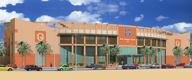 اعتمدت فكرة تصميم الواجهة الرئيسية للمبنى تكوين خرساني على شكل قوس هلالي دراماتيكي مؤكداً على منطقة الدخول ومؤلفاً من مجموعة من الأعمدة تم استخدام الشرائح المعدنية خلال تشكيلاتها المعمارية الهندسية بالأعلى وذلك لحجب الرؤية المباشرة باتجاه الوحدات السكنية المقابلة. بالإضافة إلى ذلك، تم خلق رواق مميز بين الأعمدة المذكورة والمبنى الرئيسي مما أعطى سمة مميزة للواجهة الرئيسية ولمنطقة المدخل. ولقد أسهمت مركزية موقع الخدمات العامة للمبنى في سهولة مشاركة هذه الخدمات والاستفادة القصوى من ضوء النهار لمساحات المكاتب. تبلغ مساحة قطعة الأرض للمشروع 5,400 متر مربع، فيما تصل مساحة البناء الإجمالية للمبنى المقترح إلى 17,000 متر مربع.