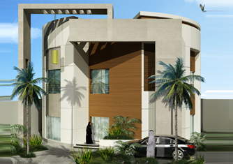 عمل الإستشاري على تصميم هذا المنزل بشكل مميز عن طريق دمج كتلة اسطوانية في واجهة المنزل الأمامية بكتلة مستطيلة في الجزء الخلفي منه مما أعطى انطباعاً معمارياً قوياً للواجهة الرئيسية والتي تتسم بالعصرية والحداثة.