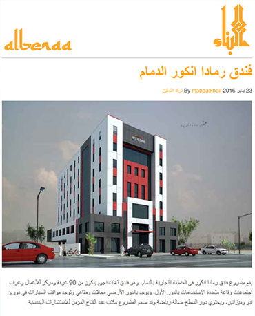 | One of the Hospitality Design project of AFM-Consultants, the Ramada Encore hotel was published in the recent posts of Albenaa online, one of the leading architectural magazine in Kingdom wide. The three-star hotel consist of 90 rooms, a business center, meeting rooms and retail shops at the ground floor. The hotel is located on a business district of Dammam. | ||||